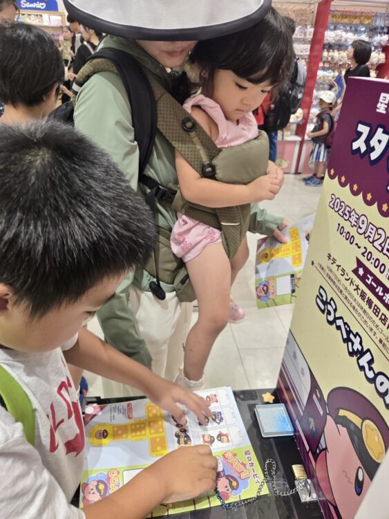 無事に合流してスタンプを押したあとは、近くのカービィ装飾を見て「かわいい〜!」と笑顔を見せてくれました。